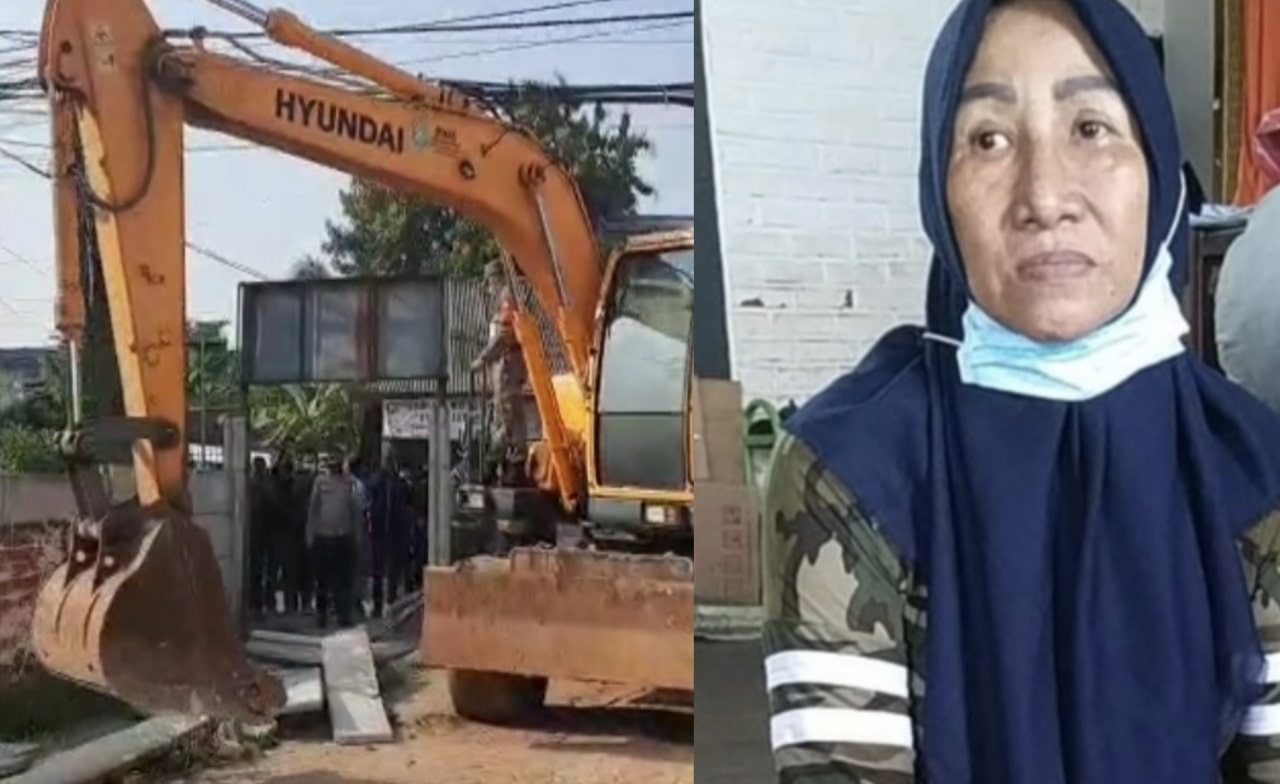 Tak selang lama sekira pukul 08.00 WIB eksekusi pembongkaran dimulai. Tak tahan membendung air mata kebahagiaan, salah satu keluarga meneteskan air mata.