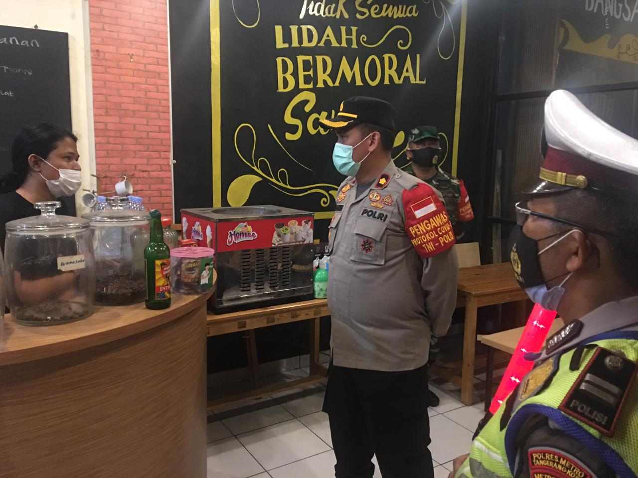 Dalam operasi serentak yang digelar di seluruh wilayah di jajaran Polda Metro Jaya kali ini, satu persatu tempat yang menjadi tempat berkerumun masyarakat (muda-mudi) seperti cafe, warung angkringan menjadi sasara petugas, dan mengimbau untuk segera bubar kembali ke rumah masing-masing.
