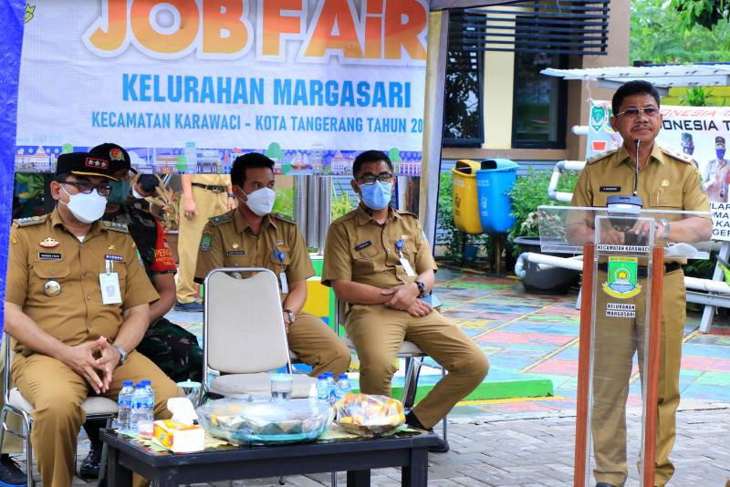 KOTA TANGERANG – Wakil Wali Kota Tangerang H. Sachrudin membuka kegiatan Jobfair Kelurahan yang berlangsung di kantor Kelurahan Margasari, Kecamatan Karawaci, Selasa (7/12/2021).