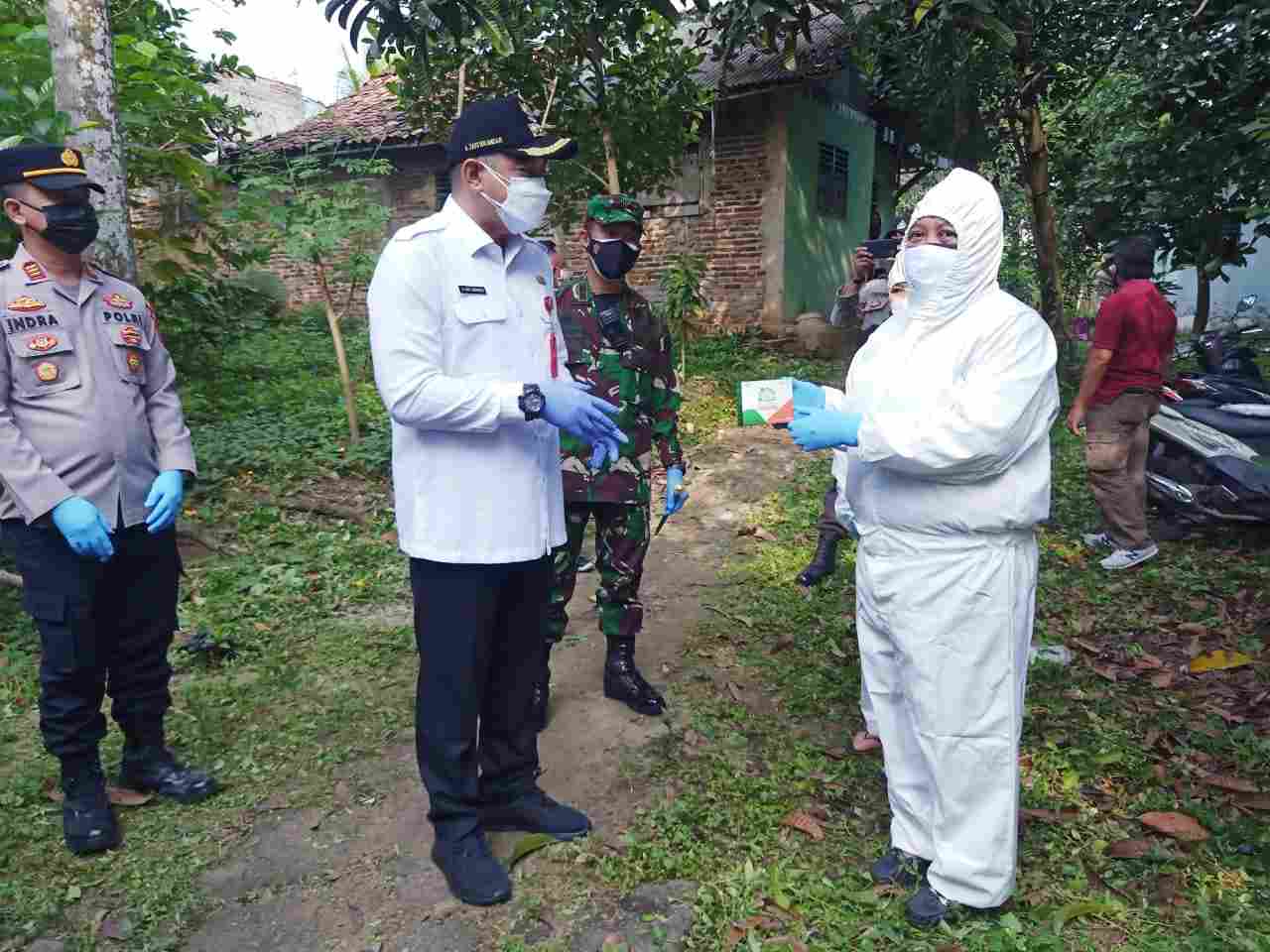 Bupati Tangerang, Ahmed Zaki Iskandar bersama Forkopimda di lokasi kegiatan pembagian sembako dan obat untuk warga isoman di Kecamatan Cikupa, Kabupaten Tangerang. (dok. infotangerang.co.id)