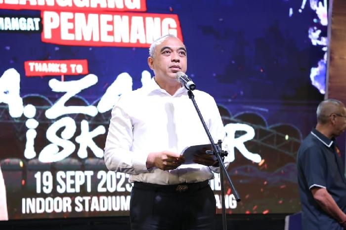 Bupati Tangerang Ahmed Zaki Iskandar saat memberikan sambutan dalam perayaan Hari Olahraga Nasional (HAORNAS) Tingkat Kabupaten Tangerang yang digelar di GOR Indoor Sport Center Kelapa Dua, Kabupaten Tangerang, Selasa 19 September 2023. (Prokopim Kabupaten Tangerang/infotangerang.co.id)