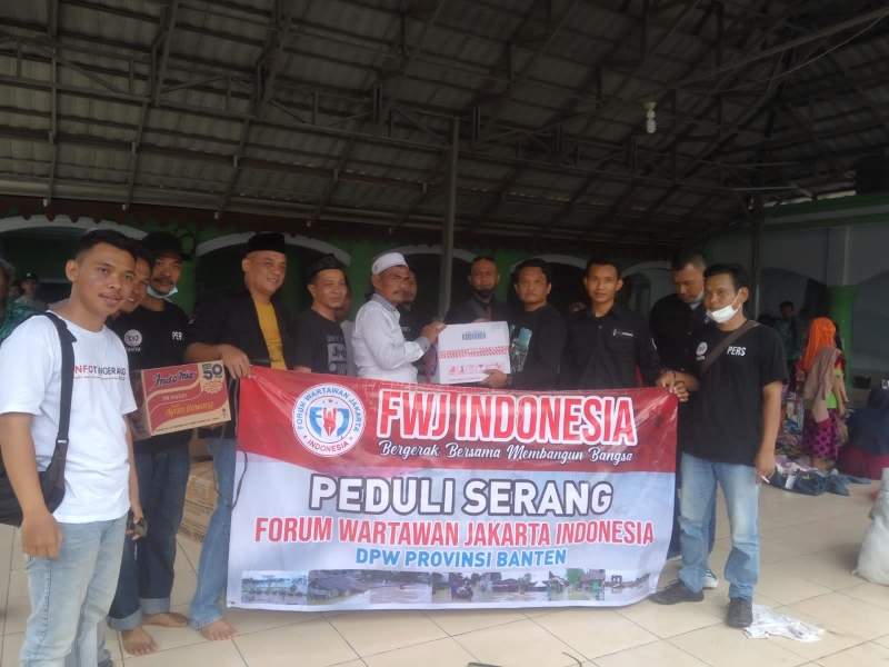 SERANG – Forum Wartawan Jakarta Indonesia (FWJI) Provinsi Banten terjun langsung ke lapangan untuk memberikan bantuan kepada korban banjir di Kampung Kenari, Kecamatan Kasemen, Kota Serang, Banten, Sabtu (5/3/2022).