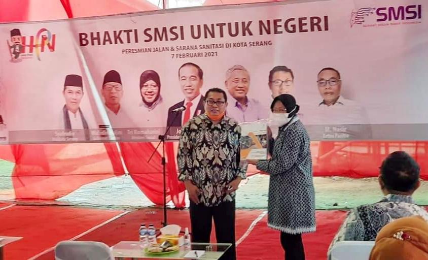 Pujian bunda Risma di alamatkan pada SMSI dalam acara peresmian Jalan Bakti SMSI dan sanitasi berupa 16 tempat mandi, cuci, dan kakus (MCK), sebagai hadiah untuk masyarakat setempat, yakni Kampung Jaha, Kelurahan Pagar Agung, Kecamatan Walantaka, Kota Serang, Provinsi Banten.