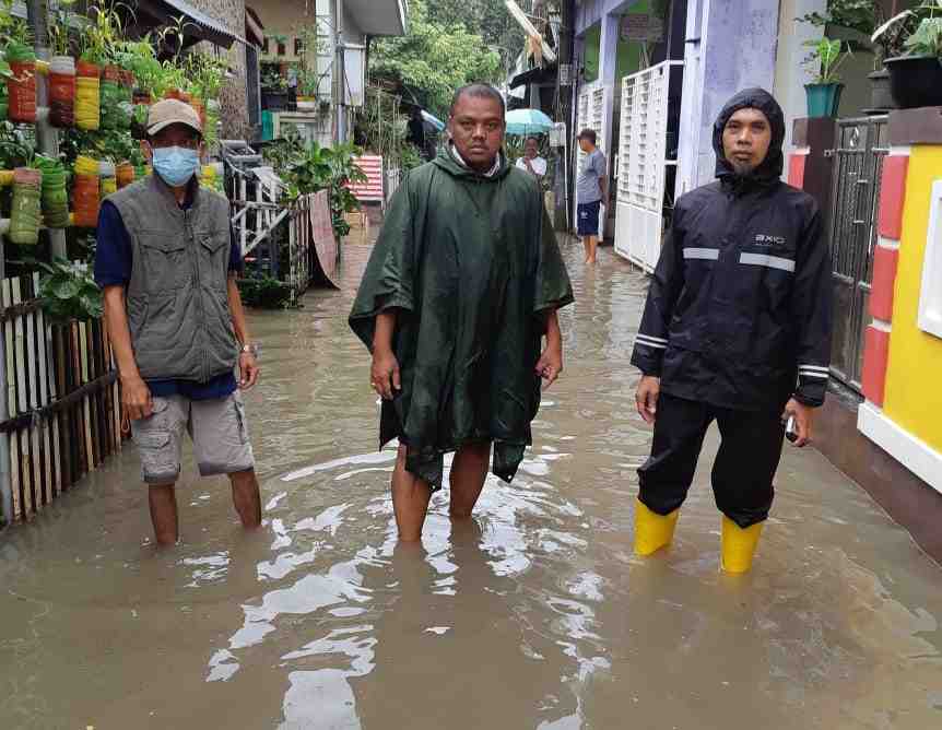 KOTA TANGERANG – Hujan deras yang mengguyur sejak kemarin malam membuat beberapa rumah warga kebanjiran. Seperti yang berada di RW 08, Jalan Abdul Rahman Saleh, Kelurahan Jurumudi, Kecamatan Benda, sejumlah rumah warga tampak tergenang air.