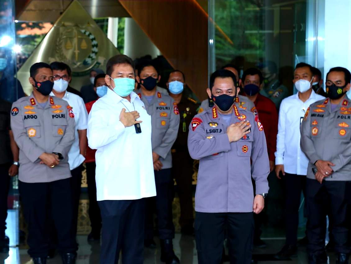 JAKARTA – Jaksa Agung RI, ST Burhanuddin mengaku bahagia mendapatkan kunjungan dari Kapolri Jenderal Listyo Sigit Prabowo di kantor Kejaksaan Agung, Rabu (3/2/2021). Menurut dia, Listyo Sigit sebenarnya sudah sering mengunjungi Gedung Kejaksaan Agung. Tapi, kali ini berbeda kunjungannya.