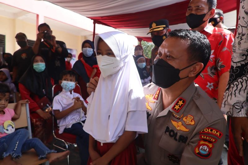 Kapolda Banten Irjen dr. Rudy Heriyanto didampingi Kapolresta Tangerang Kombes Zain Dwi Nugroho meninjau kegiatan vaksinasi anak di SDN 2 Pasanggrahan, Kecamatan Solear, Kabupaten Tangerang. (Dok. Polresta Tangerang/infotangerang.co.id)
