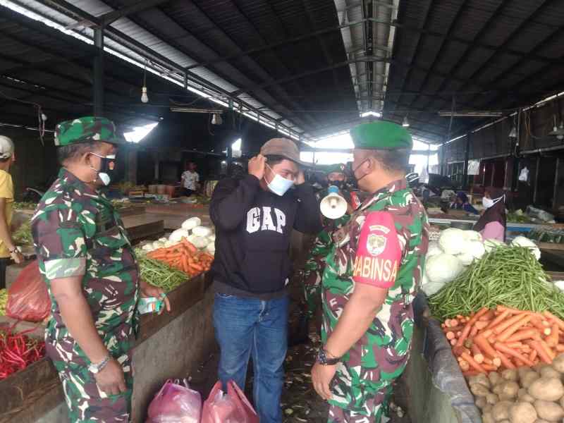 KABUPATEN TANGERANG – Jajaran Kodim 0510/Trs, Koramil 01/Tln terus gencarkan pelaksanaan PPKM level 3 di pasar tradisional. Hal itu dilakukan dalam rangka menekan penyebaran Covid-19.