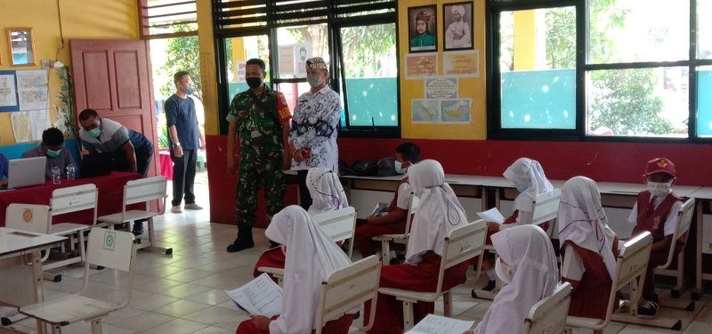 KABUPATEN TANGERANG – Serbuan vaksinasi anak terus digencarkan. Koramil 04 Cikupa menggelar vaksinasi untuk anak usia 6-11 tahun di SDN Dukuh 3 dan SDN Bundar 4, Sabtu (18/12/2021).