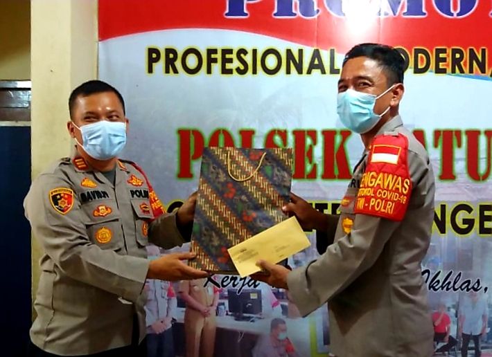 Acara lepas sambut ini digelar di Aula Makopolsek Batuceper, Jalan Daan Mogot, Kota Tangerang, Senin (5/4/2021). Tampak personel Polsek Batuceper dari Kanit Reskrim, dan perwira turut menyaksikan acara lepas sambut tersebut.