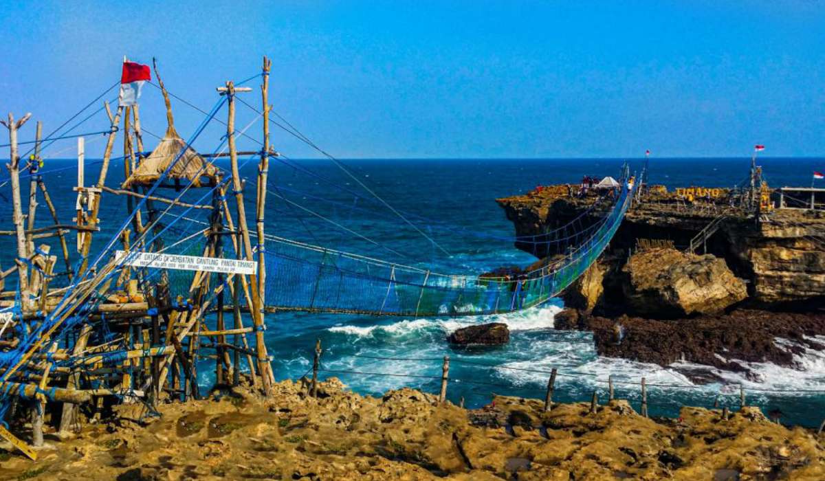 Bagi penggemar wisata yang memacu adrenalin, Pantai Timang di Yogyakarta adalah destinasi yang menantang. Popularitas pantai ini terletak pada fitur ekstremnya: jembatan gantung dan kereta gantung tradisional yang membentang di atas gelombang samudra, menghubungkan daratan dengan tebing karang yang menjulang. Hanya pengunjung yang pemberani yang dapat menyeberanginya, menjadikan kunjungan ke sini sebagai pengalaman yang tak terlupakan.