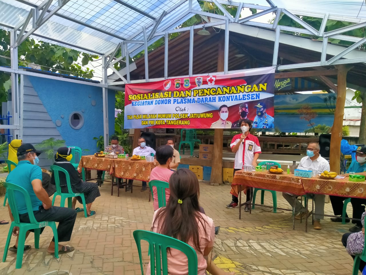 KOTA TANGERANGPalang Merah Indonesia (PMI) Kota Tangerang bersama Polsek Jatiuwung tengah menggencarkan sosialisasi kepada penyintas Covid-19, terkait plasma konvalesen untuk didonorkan kepada para pasien yang terpapar Covid-19 di wilayah RW 10 kelurahan gebang raya, Kecamatan Periuk, Kota Tangerang.