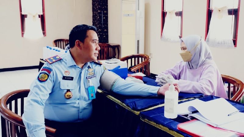 TANGERANG – Rutan Kelas 1 Tangerang Kanwil Kemenkumham Banten bekerja sama dengan Palang Merah Indonesia Kabupaten Tangerang menggelar donor darah dalam rangka memperingati Hari Bakti Pemasyarakatan ke-58.