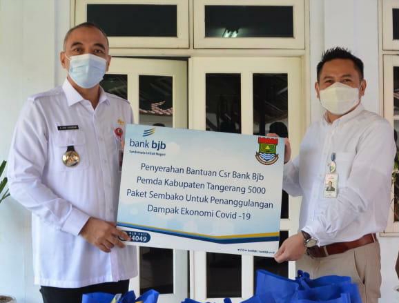 Paket sembako tersebut diserahkan langsung oleh Kepala Cabang Bank BJB cabang Balaraja Ujang Aep Saepullah kepada Bupati Tangerang Ahmed Zaki Iskandar di Pendopo Bupati, Jalan Kisamaun, Kota Tangerang.