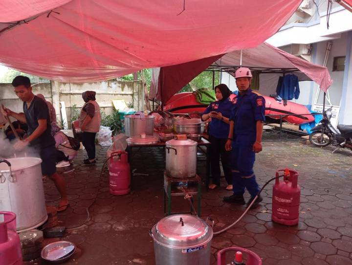 Dapur umum di Kantor Dinas Sosial untuk membantu warga terdampak banjir.