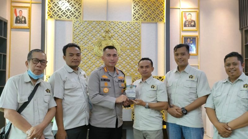 Usai kunjungan, Kapolresta Tangerang Kombes Raden Romdhon Natakusumah diberikan buku saku wartawan oleh PWI Kabupaten Tangerang.