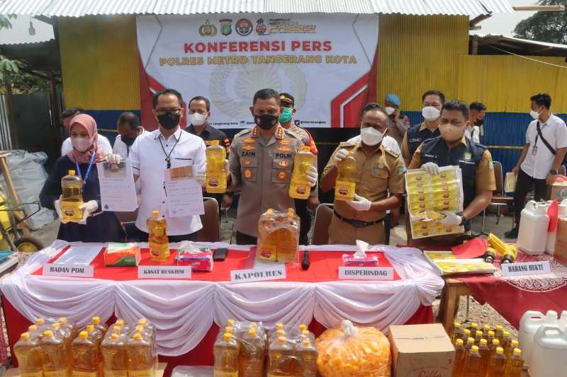 Polres Metro Tangerang Kota menggelar konferensi pers ungkap kasus minyak goreng curah ilegal.