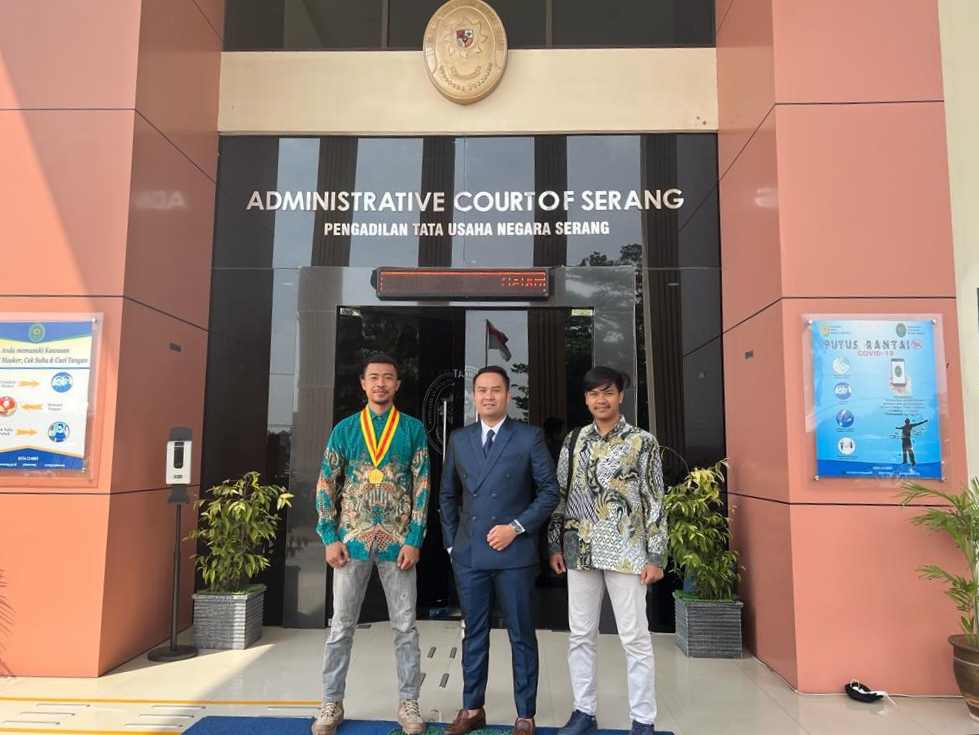 Rizki Aulia Rohman, Ketua Perhimpunan Mahasiswa Hukum Indonesia (PERMAHI) Banten (kanan) didampingi Kuasa Hukumnya Raden Elang Yayan Mulyana (tengah) usai sidang di PTUN Serang, Rabu 29 Juni 2022. (Foto: Ist)