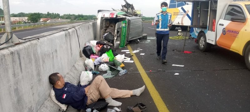 Korban bernama Firman (27) relawan dari Tangerang-Banten meninggal setelah Suzuki APV bernomor polisi B 1762 EFK yang ditumpanginya mengalami kecelakaan.