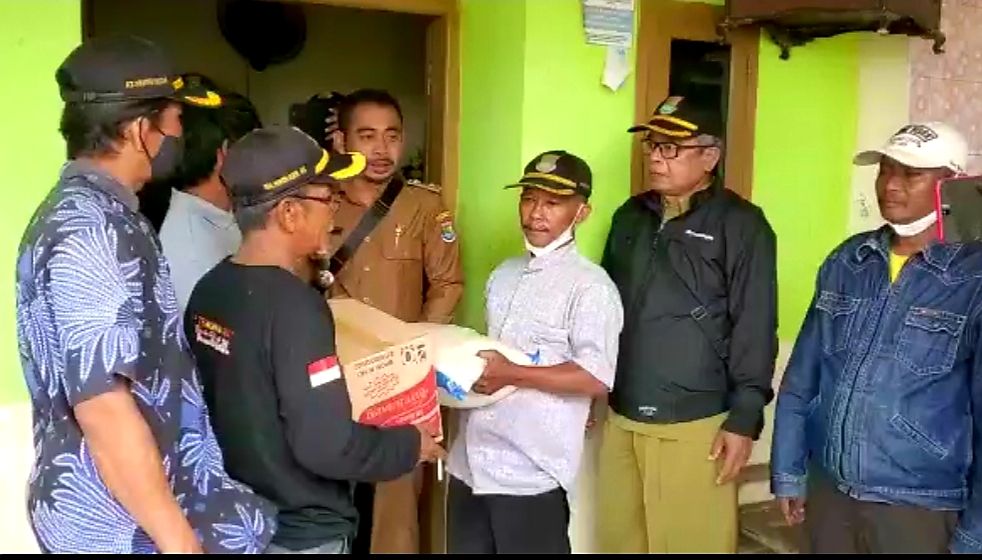 Kepala Desa Tegalangus, Muhammad Jabalnur beserta jajaran pemerintah desa memberikan bantuan kepada warga yang rumahnya tersambar petir. (Foto: Jarkasih Alliskhan/infotangerang.co.id)