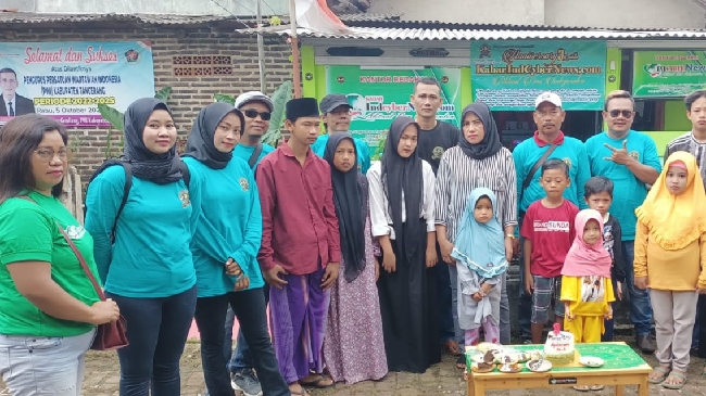 Media online kabarindcybernews.com merayakan milad yang ke-3 tahun dengan menggelar santunan anak yatim piatu.
