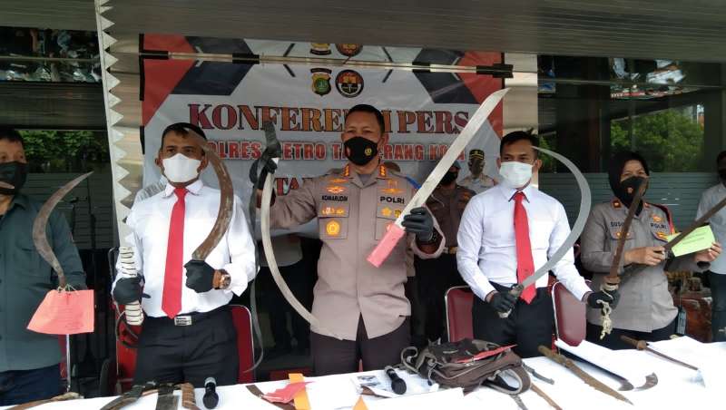 KOTA TANGERANG – Polres Metro Tangerang Kota berhasil meringkus enam pelajar SMP yang melakukan aksi tawuran di Kelurahan Poris Indah, Kecamatan Batuceper, Kota Tangerang, Minggu (6/3/2022).