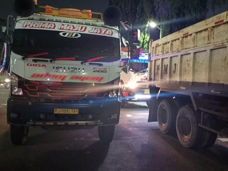 Puluhan truk tanah antre membeli solar subsidi di SPBU Babakan, Kota Tangerang. (Foto: Rivan Majid Reza/infotangerang.co.id)