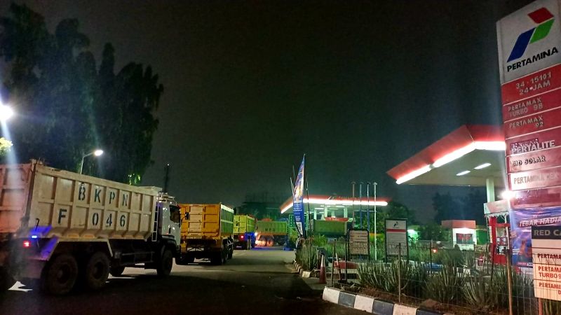 “Iya ini truk tanah untuk daerah upin Cilegon. Pemilik truk (perusahaan) beda-beda,” kata Rahman saat sedang mengantre untuk mengisi solar subsidi.