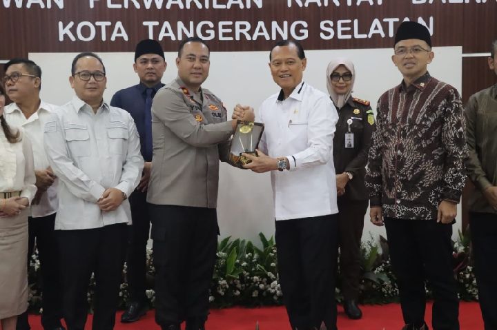 TANGERANG SELATAN – Wakapolres Tangerang Selatan, Kompol Yudi Permadi, mengunjungi kantor DPRD Kota Tangerang Selatan, Selasa (4/4/2023).